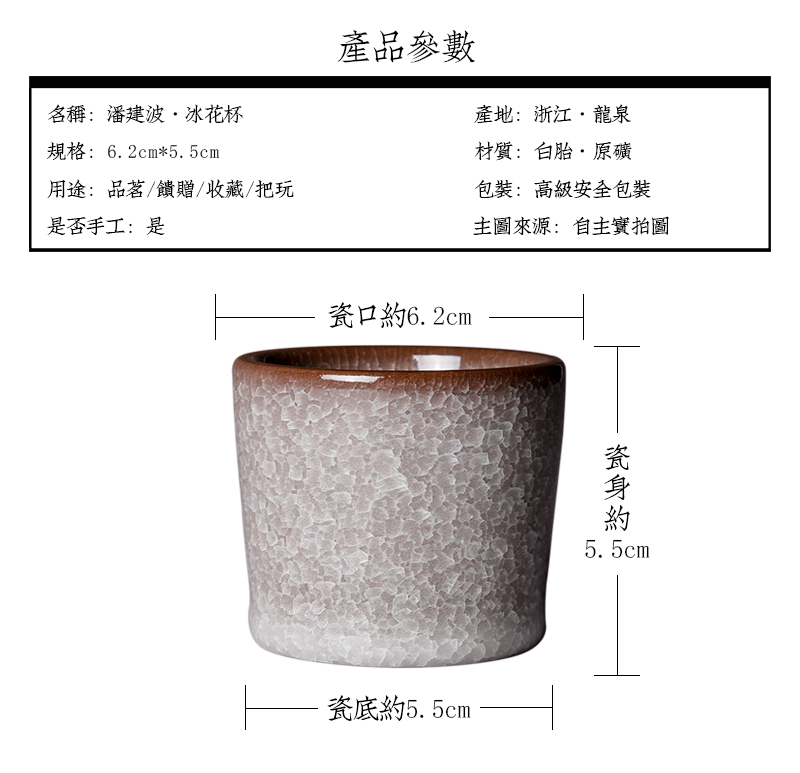 潘建波,高级工艺美术师,浙江省工艺美术大师,浙江省首届陶瓷艺术大师,毕业于景德镇陶瓷学院艺术设计专业,1974年1月生于青瓷世家,父母的熏陶和瓷土堆里的童年,令其走上了青瓷之路。1991招工到龙泉瓷器二厂设计室从事造型设计工作,1994年创办了自己的青瓷作坊——溢青轩,1995年师从中国陶瓷艺术大师陈爱明学习陶瓷造型设计。经过多年的学习、摸索、熟练地掌握了从原料配制到烧成的一整套技术。并逐步形成了自己独特的艺术风格,特别是哥窑作品造型古朴典雅、开片奇特、釉色温润如玉。近年来,其作品曾多次获奖并被收藏。
