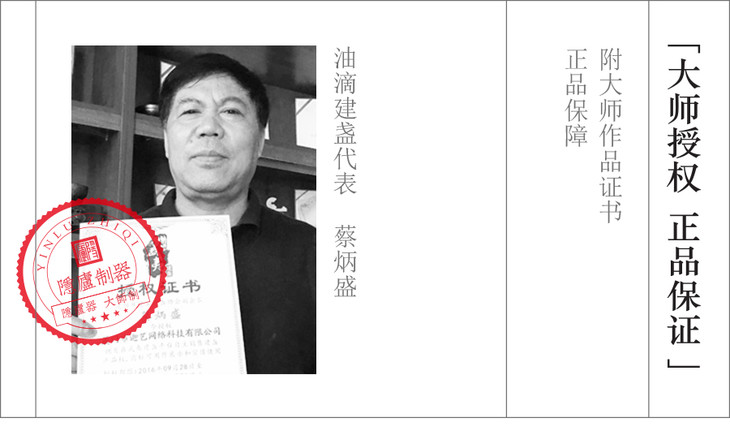 蔡炳盛出生于陶瓷世家,祖父辈起就一直从事陶瓷烧制, 在陶瓷烧制造诣方面有着深厚的根基。自1982年开始独立研究建窑建盏烧制至今,一直从事建窑建盏的烧制研究。国家部门恢复建窑建盏烧制,研究生产兔毫釉成功后,以个人形式第一个摸索出油滴釉配方以及烧制工艺,是中国最早的建盏烧制人。在30多年的建盏烧制生涯中,不仅受到了业内人士的一致好评,也得到了建盏爱好者的良好口碑。建盏是中华民族的艺术瑰宝,蔡炳盛正是秉承热爱建盏的情怀,以身为一个建盏匠人的自觉,本着对建盏艺术美的追求之匠心,勤勤恳恳的烧制建盏,让建盏窑火重燃,让古老的技艺薪火相传。