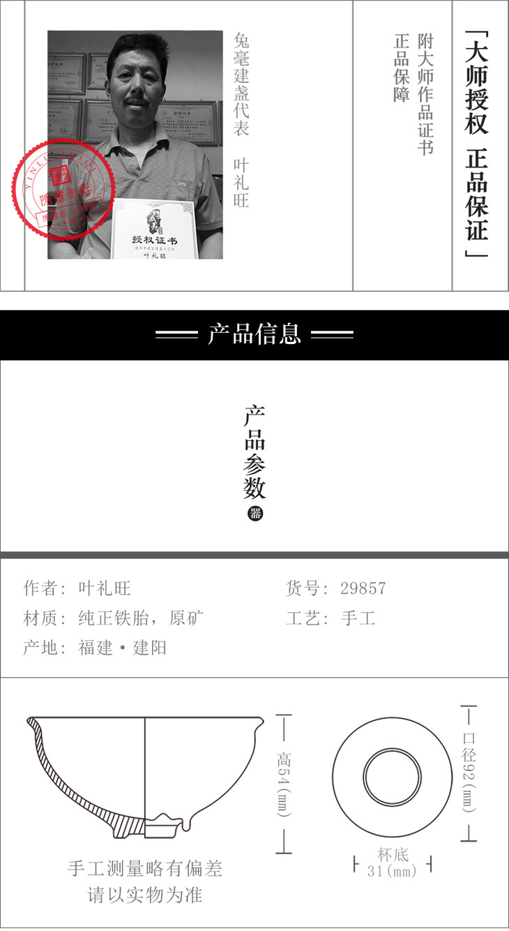 建盏大师叶礼旺 束口黄毫
