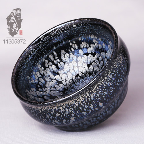 建盏大师阙梅娇,束口黑牡丹福禄杯