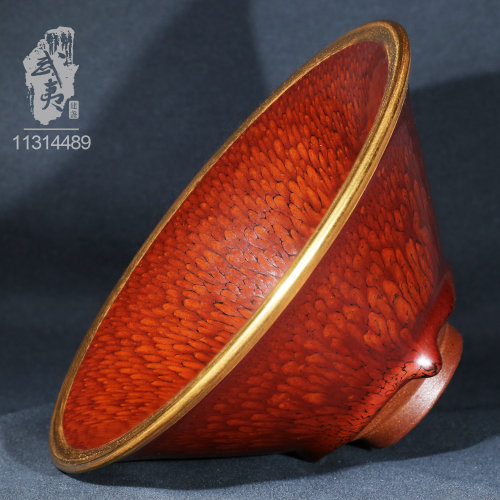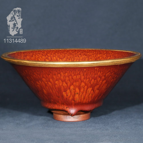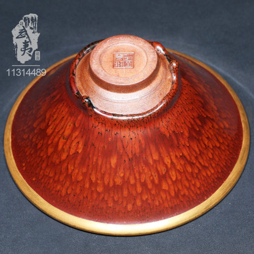 建盏大师陈其富,金扣柿红大喇叭盏