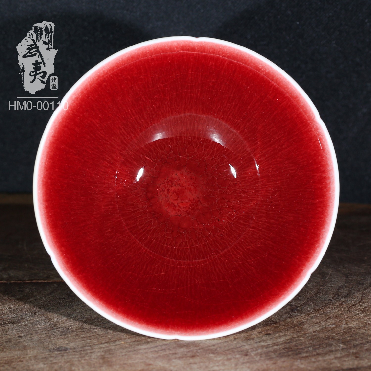 “脱口垂釉郎不流,牛毛开片非宣红”这是行业里对贡品级郎红特征的总结,简而言之,便是器物口沿呈一环露白,釉料垂流止于底而不过足,凝聚出鸡翅木纹;釉色层次分明,纹如牛毛,釉面带有冰裂纹,整器之红渐而万变,艳而不俗。贡品级郎红的烧制讲究天时地利人和,实属不易,故诸多逐利商人以化学品替代原矿釉料,致品相参差不齐。胡旻恪守本心,严于律己,不惜废万品,用实际行动守护传承下来的郎红技艺。